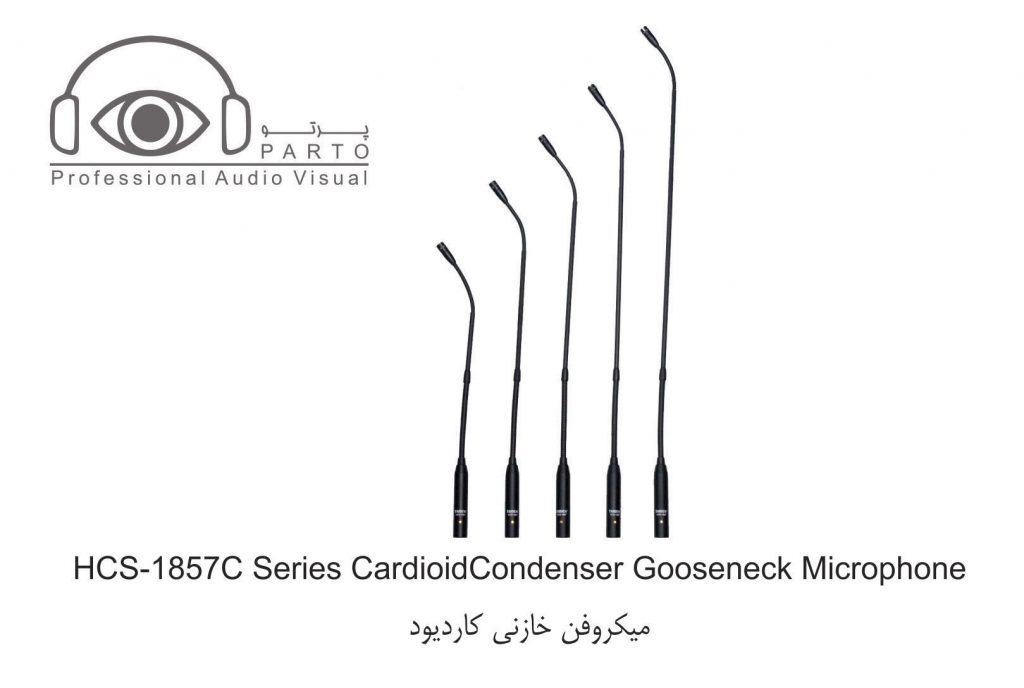 میکروفن کاردیود خازنی HCS-1857 به منظور تقویت کیفیت صدا ، ضبط حرفه ای ، تلویزیون ، کنفرانس و سایر برنامه های دریافتی صدای درخواستی طراحی شده است . این میکروفن قادر است به هر سوکت ۳-pin از نوع XLRF متصل شود (پایه ی میکروفن رومیزی سری HCS-1857 اختیاری است) یا به طور مستقیم به منظور کنسول میکس صدا به طور گسترده در جلسات ، سخنرانی ، تدریس و … مورد استفاده قرار می گیرد .