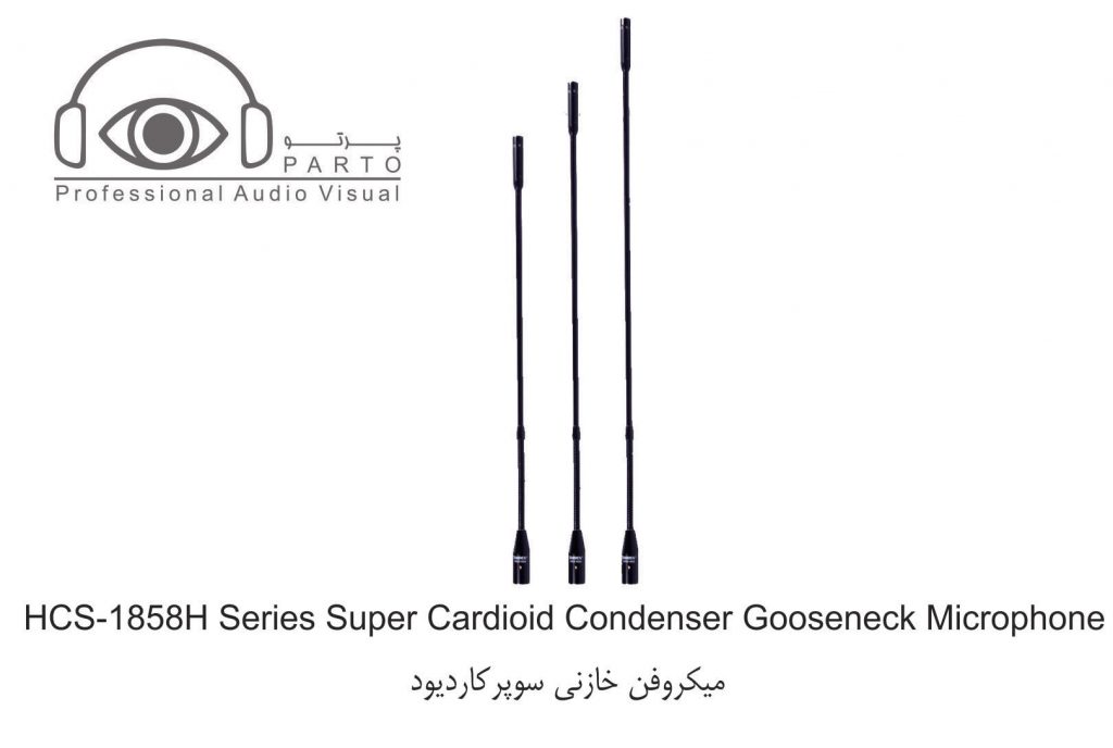 میکروفن کاردیود خازنی HCS-1858 به منظور تقویت کیفیت صدا ، ضبط حرفه ای ، تلویزیون ، کنفرانس و سایر برنامه های دریافتی صدای درخواستی طراحی شده است . این میکروفن قادر است به هر سوکت ۳-pin از نوع XLRF متصل شود (پایه ی میکروفن رومیزی سری HCS-1857 اختیاری است) یا به طور مستقیم به منظور کنسول میکس صدا به طور گسترده در جلسات ، سخنرانی ، تدریس و … مورد استفاده قرار می گیرد .
