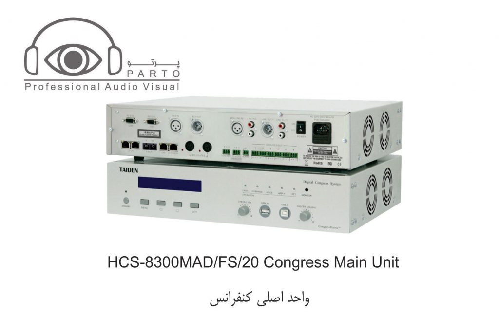مدل HCS-8300MAD/FS/20 …………مذاکره ، رای گیری ، ۶۴ کانال ، رابط فیبر نوری تک حالته ، ورودی/ خروجی دیجیتال AES/EBU ، رابط Dante ، میکروفن خروجی گروه