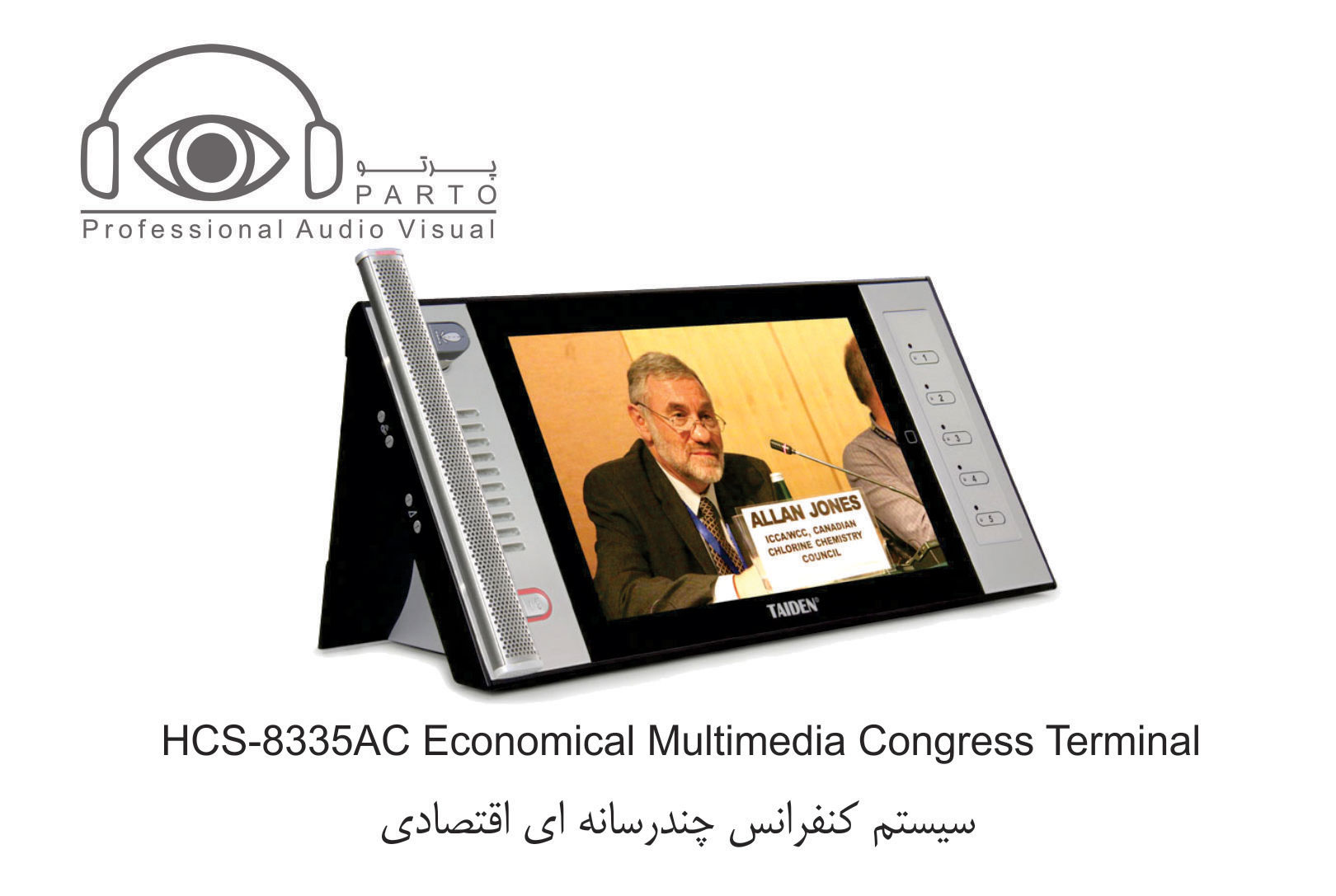 مدل HCS-8335AC …………واحد ریاست ، میکروفن Array ، صفحه نمایش LCD 10 اینچی با رزولوشن ۱۲۸۰ X 800 ، دارای امکان سخنرانی و رای گیری ، دارای ۶۴CHs X 2 ، نمایش ویدئو HD ، دارای IC-Card خوان توکار ، پانل نقره ای خاکستری + پایه مشکی