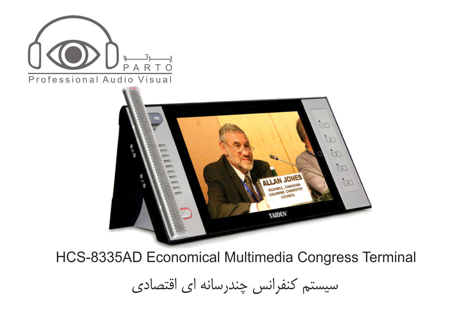 مدل HCS-8335AD …………واحد شرکت کننده ، میکروفن Array ، میکروفن Array ، صفحه نمایش LCD 10 اینچی با رزولوشن ۱۲۸۰ X 800 ، دارای امکان سخنرانی و رای گیری ، دارای ۶۴CHs X 2 ، نمایش ویدئو HD ، دارای IC-Card خوان توکار ، پانل نقره ای خاکستری + پایه مشکی