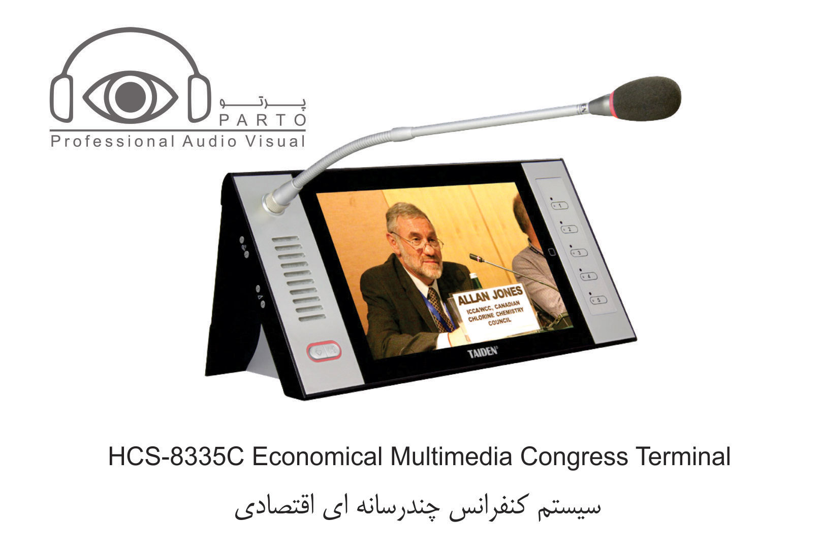 مدل HCS-8335D …………واحد شرکت کننده ، صفحه نمایش LCD 10 اینچی با رزولوشن ۱۲۸۰ X 800 ، دارای امکان سخنرانی و رای گیری ، دارای ۶۴CHs X 2 ، نمایش ویدئو HD ، دارای IC-Card خوان توکار ، پانل نقره ای خاکستری + پایه مشکی