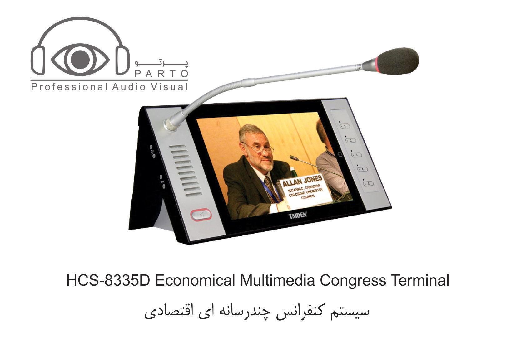 مدل HCS-8335D-NP …………واحد شرکت کننده ، صفحه نمایش LCD 10 اینچی با رزولوشن ۱۲۸۰ X 800 ، دارای امکان سخنرانی و رای گیری ، دارای ۶۴CHs X 2 ، نمایش ویدئو HD ، دارای IC-Card خوان توکار ، دارای nameplate چاپی ، پانل نقره ای خاکستری + پایه مشکی