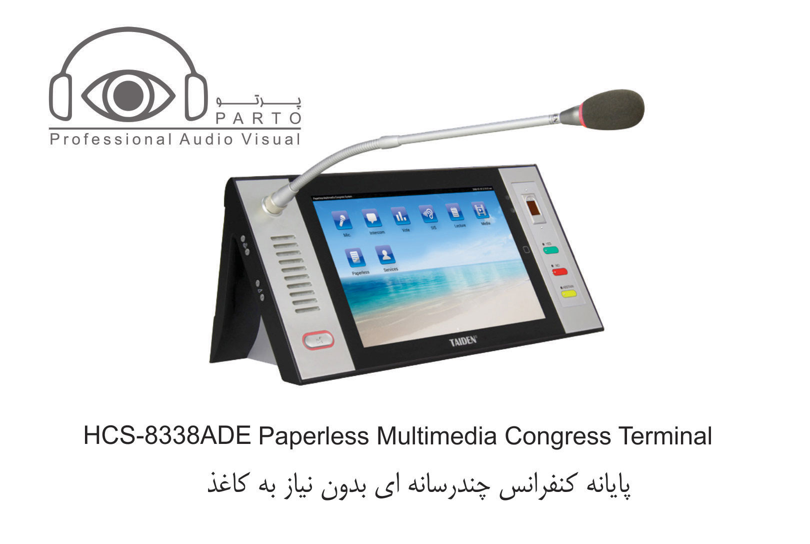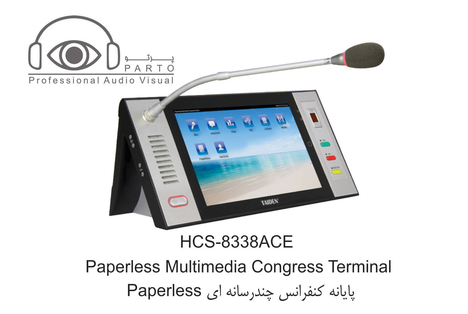 مدل HCS-8338ACE …………واحد ریاست ، صفحه نمایش LCD 10 اینچی با رزولوشن ۱۲۸۰ X 800 ، صفحه نمایش لمسی خازنی ، دارای دوربین ۵ مگاپیکسلی ، دارای امکان سخنرانی و رای گیری دارای ۶۴CHs X 2 ، نمایش ویدئو و مکالمه ویدئویی ، سرویس خدماتی کنفرانس ، دارای IC-Card خوان توکار ، شناسایی اثر انگشت ، دسترسی به اینترنت ، دارای nameplate چاپی ، پانل نقره ای خاکستری + پایه مشکی