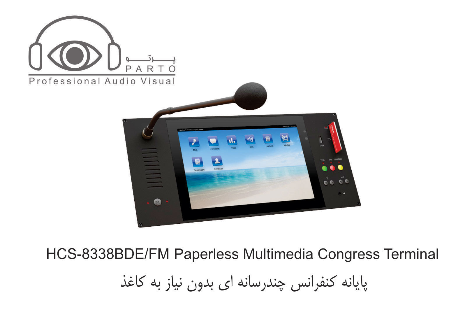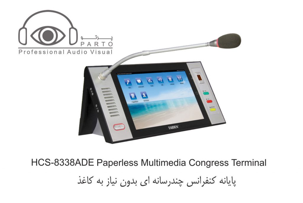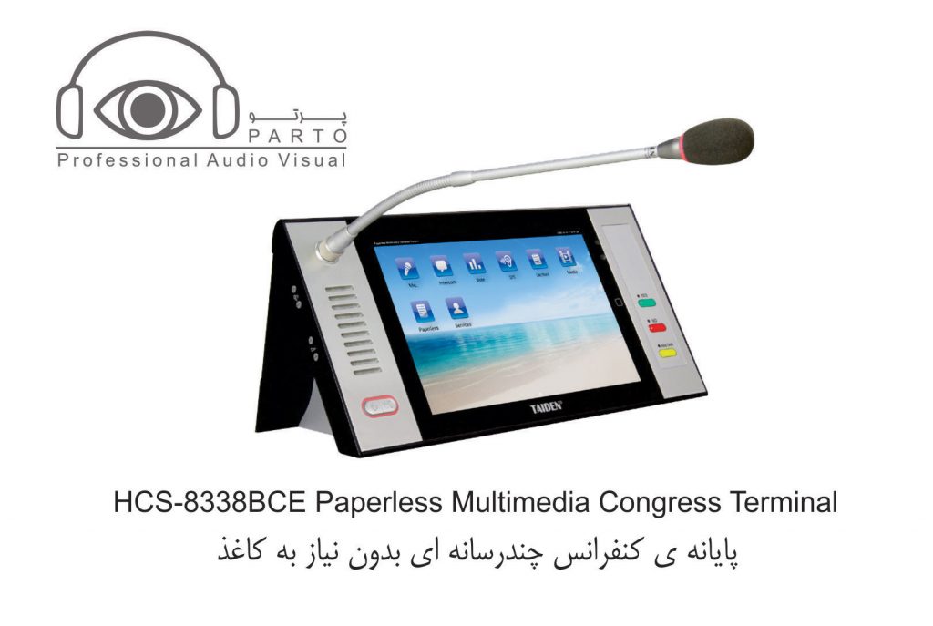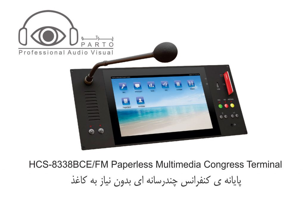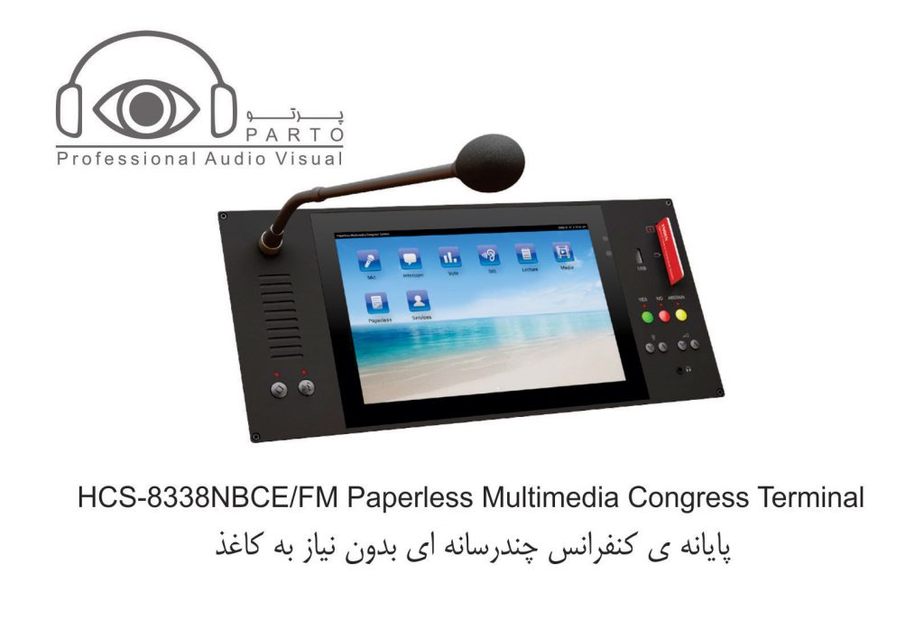 مدل HCS-8338BCE …………واحد ریاست ، صفحه نمایش LCD 10 اینچی با رزولوشن ۱۲۸۰ X 800 ، صفحه نمایش لمسی خازنی ، دارای دوربین ۵ مگاپیکسلی ، دارای امکان سخنرانی و رای گیری ، دارای ۶۴CHs X 2 ، نمایش ویدئو و مکالمه ویدئویی ، سرویس خدماتی کنفرانس ، دارای IC-Card خوان توکار ، دارای nameplate چاپی ، پانل نقره ای خاکستری + پایه مشکی
