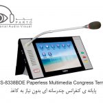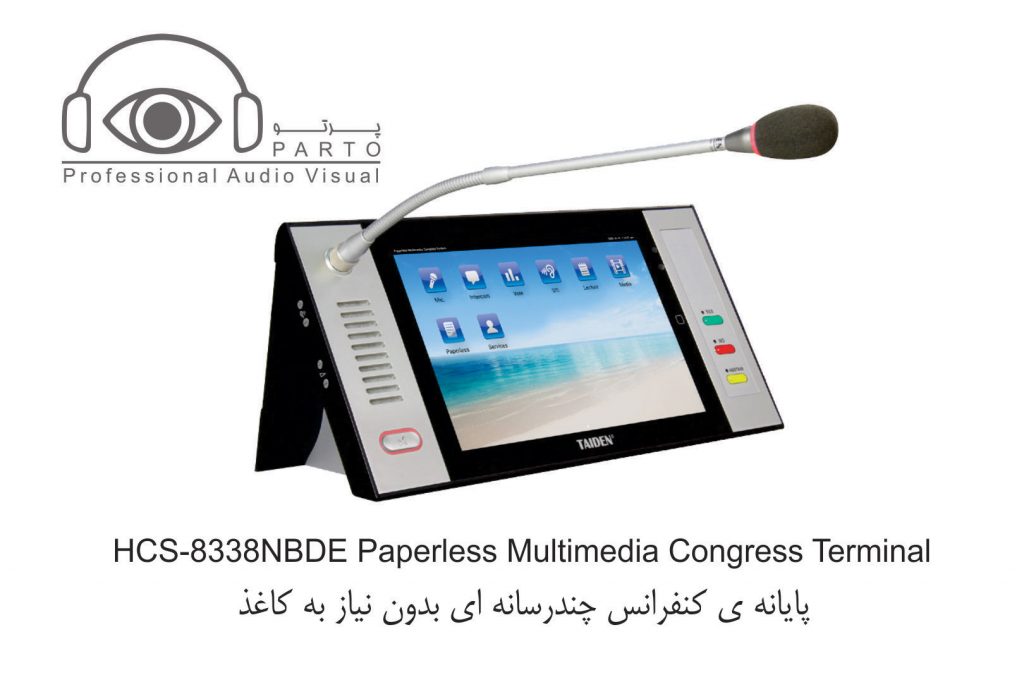 مدل HCS-8338NBDE-NP …………واحد شرکت کننده ، صفحه نمایش LCD 10 اینچی با رزولوشن ۱۲۸۰ X 800 ، صفحه نمایش لمسی خازنی ، دارای دوربین ۵ مگاپیکسلی ، دارای امکان سخنرانی و رای گیری ، دارای ۶۴CHs X 2 ، نمایش ویدئو و مکالمه ویدئویی ، سرویس خدماتی کنفرانس ، دارای IC-Card خوان توکار ، دسترسی به اینترنت ، دارای nameplate جوهر الکترونیکی ، پانل نقره ای خاکستری + پایه مشکی