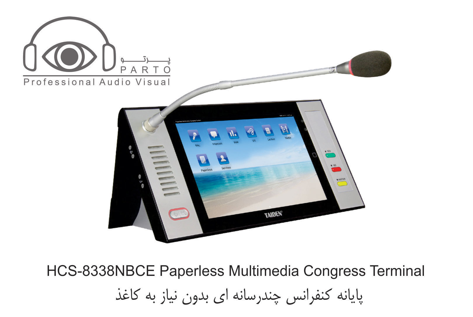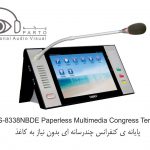مدل HCS-8338NBDE …………واحد شرکت کننده ، صفحه نمایش LCD 10 اینچی با رزولوشن ۱۲۸۰ X 800 ، صفحه نمایش لمسی خازنی ، دارای دوربین ۵ مگاپیکسلی ، دارای امکان سخنرانی و رای گیری ، دارای ۶۴CHs X 2 ، نمایش ویدئو و مکالمه ویدئویی ، سرویس خدماتی کنفرانس ، دارای IC-Card خوان توکار ، دسترسی به اینترنت ، دارای nameplate چاپی ، پانل نقره ای خاکستری + پایه مشکی