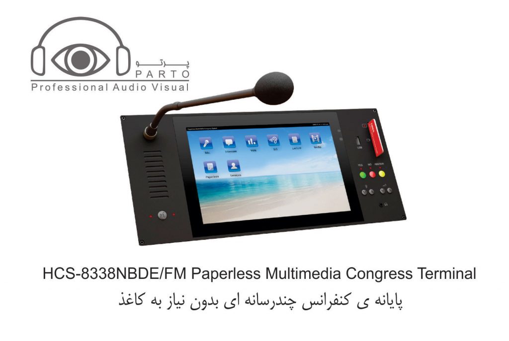 مدل HCS-8338BDE-NP …………واحد شرکت کننده ، صفحه نمایش LCD 10 اینچی با رزولوشن ۱۲۸۰ X 800 ، صفحه نمایش لمسی خازنی ، دارای دوربین ۵ مگاپیکسلی ، دارای امکان سخنرانی و رای گیری ، دارای ۶۴CHs X 2 ، نمایش ویدئو و مکالمه ویدئویی ، سرویس خدماتی کنفرانس ، دارای IC-Card خوان توکار ، دارای nameplate جوهر الکترونیکی ، پانل نقره ای خاکستری + پایه مشکی