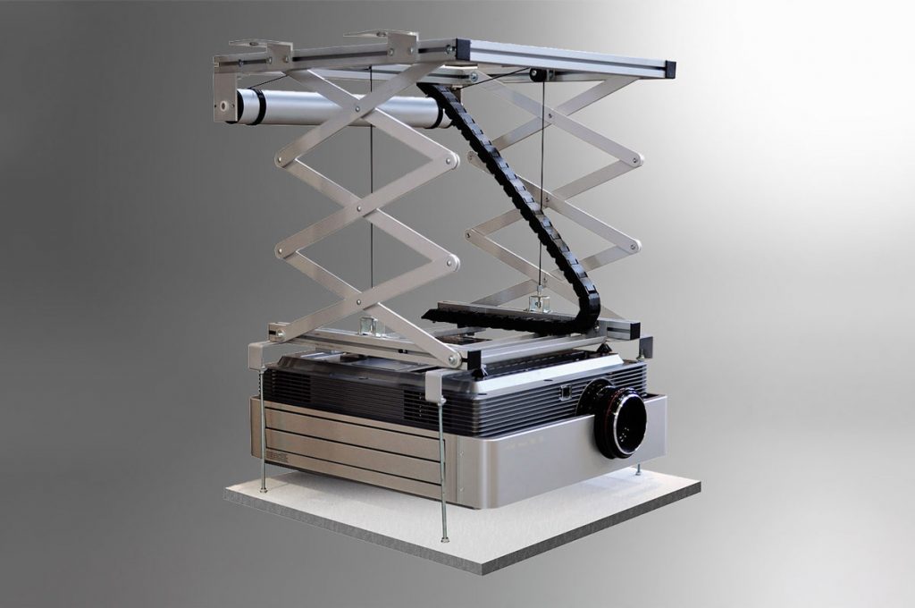 وسیله ای مناسب جهت نصب دیتا پروژکتور بر روی سقف می باشد. با به کارگیری این وسیله هنگام استفاده از پروژکتور ، بالابر ، دیتا پروژکتور را از سقف خارج نموده و در ارتفاع مناسب قرار می دهد و پس از اتمام نمایش، مجددا در سقف نگهداری می نمایند. با توجه به حساس بودن دیتا پروژکتور ، مراقبت در نگهداری و هم چنین قرارگیری دستگاه در محیطی تمیز و دور از گرد و غبار باعث افزایش طول عمر دستگاه می گردد و از دیگر کاربرد های بالابر دیتا پروژکتور، به منظور سرویس دیتا پروژکتور می باشد که هنگام سرویس، بالابر، دیتا پروژکتور را به سطح دسترسی سرویس کار رسانده و پس از سرویس به محل قرارگیری باز می گرداند.