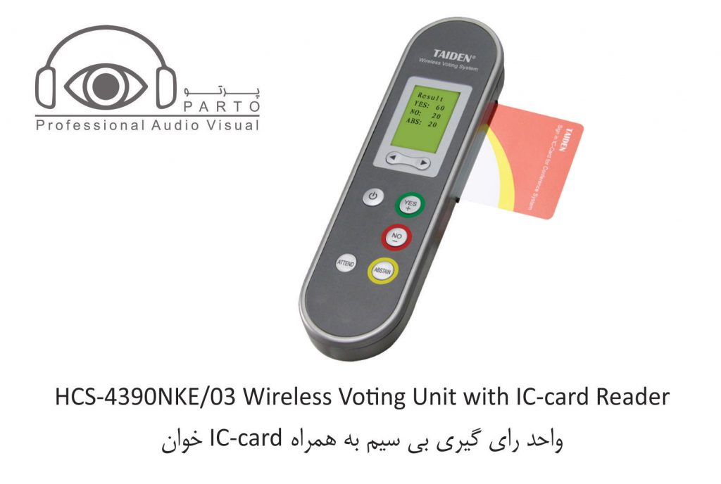 مدل HCS-4390NKE/03 …………قابل حمل ، دارای ۳ کلید رای گیری ، دارای صفحه نمایش LCD ، دارای IC-Card ، به رنگ خاکستری